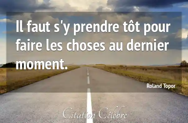 Il faut s'y prendre tôt pour faire les choses au dernier moment.