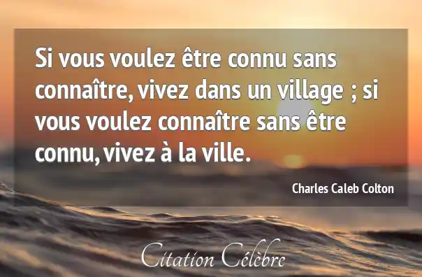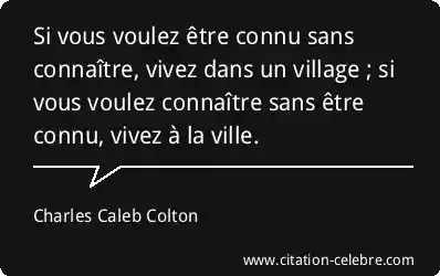 Si vous voulez être connu sans connaître, vivez dans un village ; si vous voulez connaître sans être connu, vivez à la ville.
