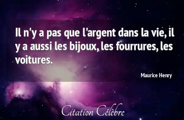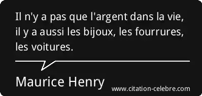 Il n'y a pas que l'argent dans la vie, il y a aussi les bijoux, les fourrures, les voitures.