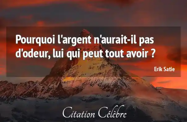 Pourquoi l'argent n'aurait-il pas d'odeur, lui qui peut tout avoir ?