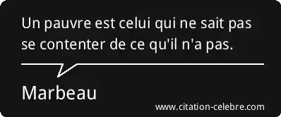 Un pauvre est celui qui ne sait pas se contenter de ce qu'il n'a pas.
