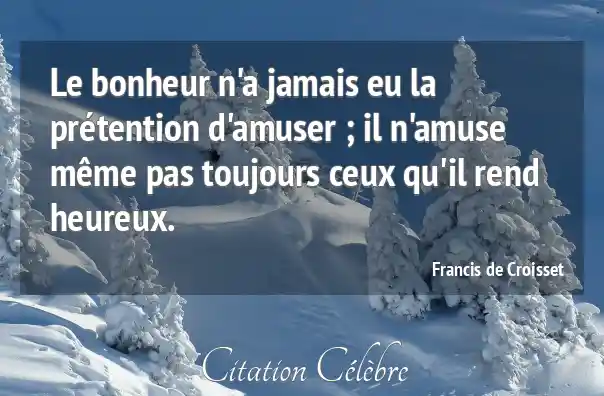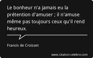 Le bonheur n'a jamais eu la prétention d'amuser ; il n'amuse même pas toujours ceux qu'il rend heureux.