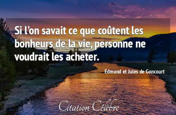 Si l'on savait ce que coûtent les bonheurs de la vie, personne ne voudrait les acheter.