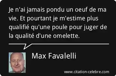 Je n'ai jamais pondu un oeuf de ma vie. Et pourtant je m'estime plus qualifié qu'une poule pour juger de la qualité d'une omelette.