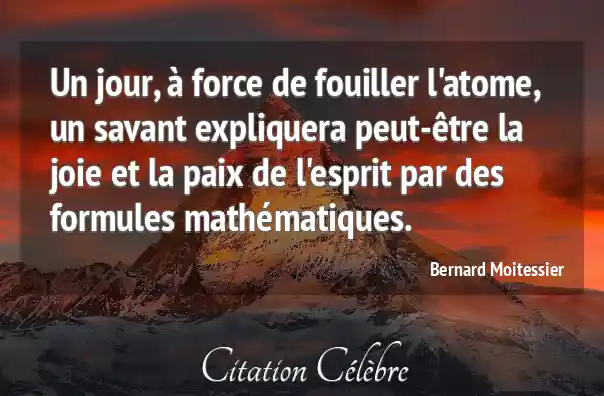 Un jour, à force de fouiller l'atome, un savant expliquera peut-être la joie et la paix de l'esprit par des formules mathématiques.