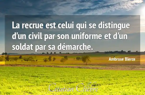 La recrue est celui qui se distingue d'un civil par son uniforme et d'un soldat par sa démarche.