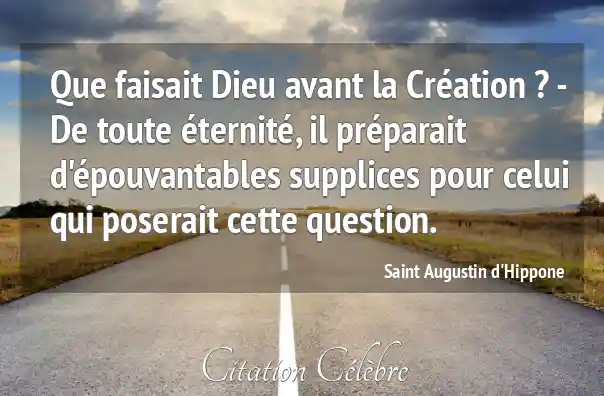 Que faisait Dieu avant la Création ? - De toute éternité, il préparait d'épouvantables supplices pour celui qui poserait cette question.