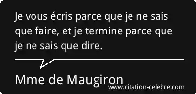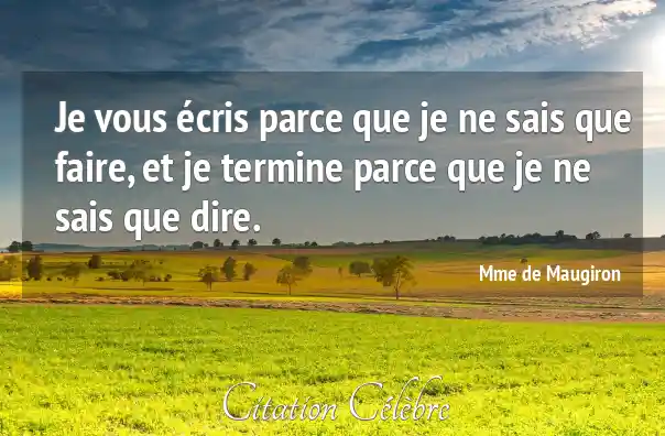 Je vous écris parce que je ne sais que faire, et je termine parce que je ne sais que dire.