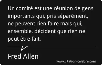 Un comité est une réunion de gens importants qui, pris séparément, ne peuvent rien faire mais qui, ensemble, décident que rien ne peut être fait.