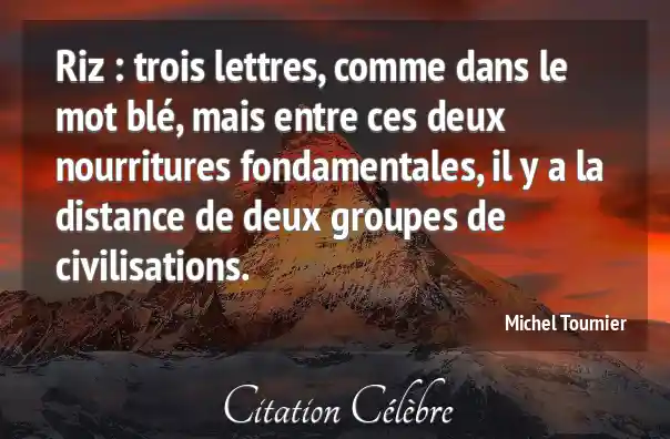 Riz : trois lettres, comme dans le mot blé, mais entre ces deux nourritures fondamentales, il y a la distance de deux groupes de civilisations.