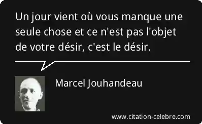 Un jour vient où vous manque une seule chose et ce n'est pas l'objet de votre désir, c'est le désir.