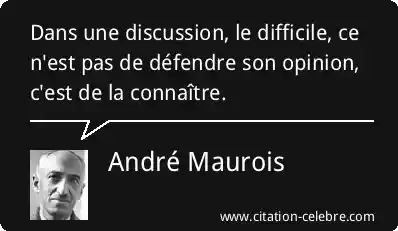 Dans une discussion, le difficile, ce n'est pas de défendre son opinion, c'est de la connaître.