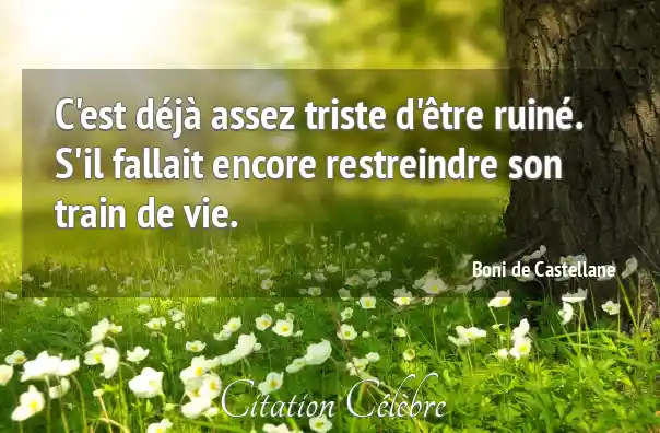 C'est déjà assez triste d'être ruiné. S'il fallait encore restreindre son train de vie.