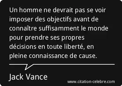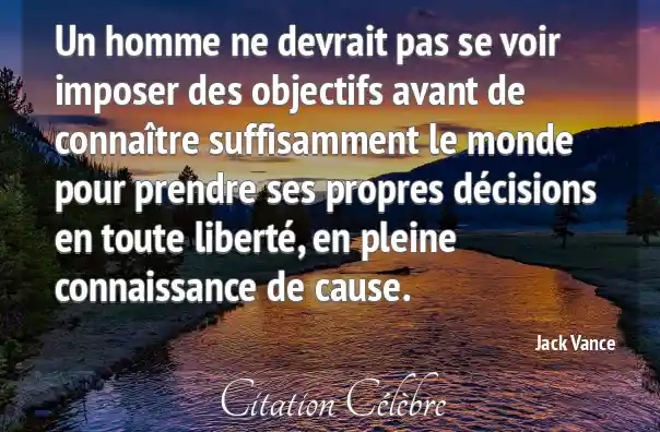 Un homme ne devrait pas se voir imposer des objectifs avant de connaître suffisamment le monde pour prendre ses propres décisions en toute liberté, en pleine connaissance de cause.