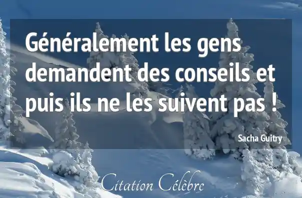 Généralement les gens demandent des conseils et puis ils ne les suivent pas !