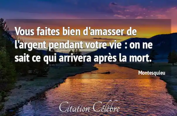Vous faites bien d'amasser de l'argent pendant votre vie : on ne sait ce qui arrivera après la mort.