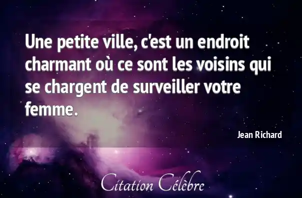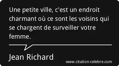 Une petite ville, c'est un endroit charmant où ce sont les voisins qui se chargent de surveiller votre femme.