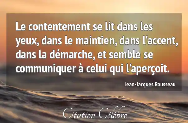 Le contentement se lit dans les yeux, dans le maintien, dans l'accent, dans la démarche, et semble se communiquer à celui qui l'aperçoit.
