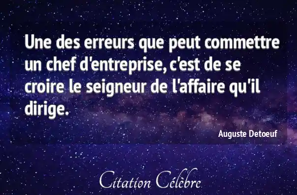 Une des erreurs que peut commettre un chef d'entreprise, c'est de se croire le seigneur de l'affaire qu'il dirige.