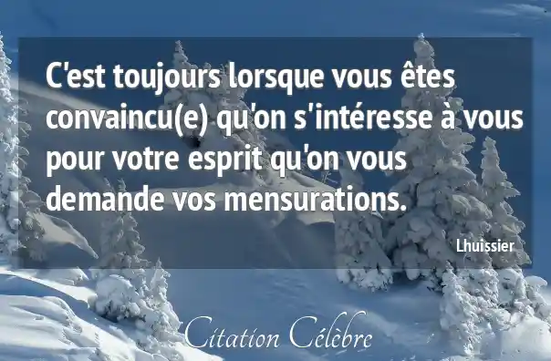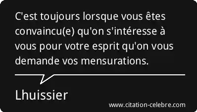 C'est toujours lorsque vous êtes convaincu(e) qu'on s'intéresse à vous pour votre esprit qu'on vous demande vos mensurations.