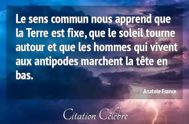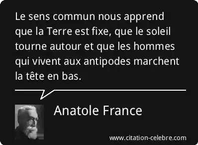 Le sens commun nous apprend que la Terre est fixe, que le soleil tourne autour et que les hommes qui vivent aux antipodes marchent la tête en bas.