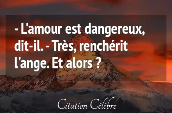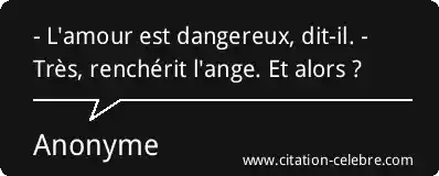 - L'amour est dangereux, dit-il. - Très, renchérit l'ange. Et alors ?