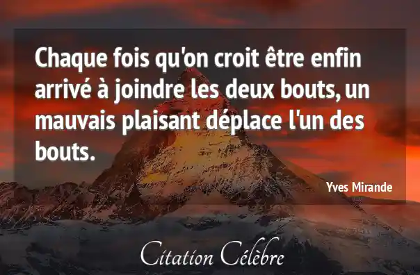 Chaque fois qu'on croit être enfin arrivé à joindre les deux bouts, un mauvais plaisant déplace l'un des bouts.