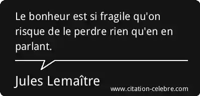 Le bonheur est si fragile qu'on risque de le perdre rien qu'en en parlant.