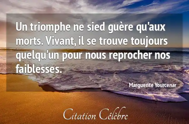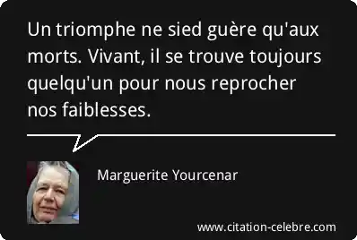 Un triomphe ne sied guère qu'aux morts. Vivant, il se trouve toujours quelqu'un pour nous reprocher nos faiblesses.