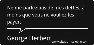 Ne me parlez pas de mes dettes, à moins que vous ne vouliez les payer.
