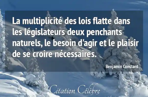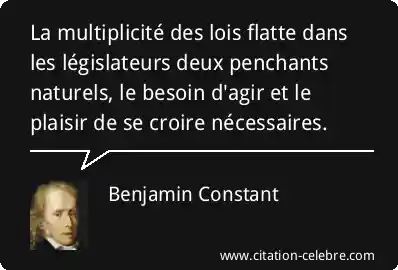 La multiplicité des lois flatte dans les législateurs deux penchants naturels, le besoin d'agir et le plaisir de se croire nécessaires.