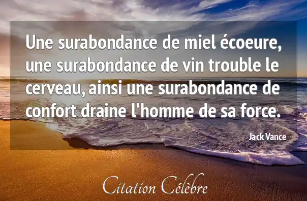 Une surabondance de miel écoeure, une surabondance de vin trouble le cerveau, ainsi une surabondance de confort draine l'homme de sa force.