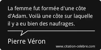 La femme fut formée d'une côte d'Adam. Voilà une côte sur laquelle il y a eu bien des naufrages.