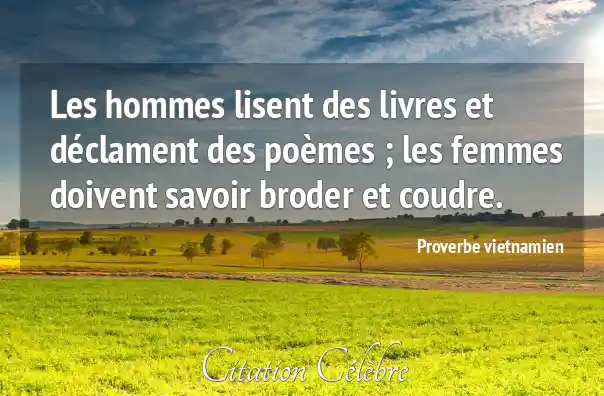 Les hommes lisent des livres et déclament des poèmes ; les femmes doivent savoir broder et coudre.