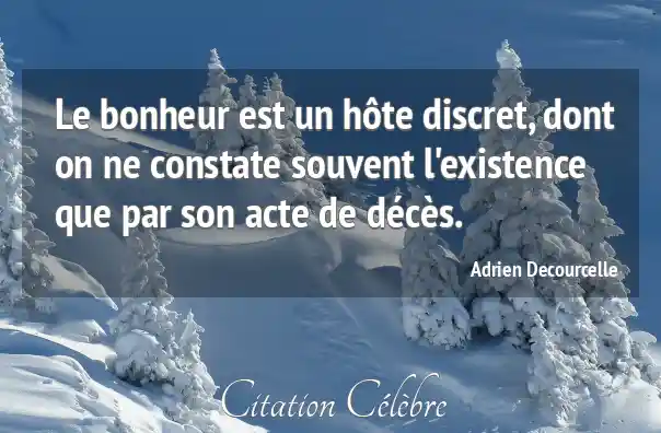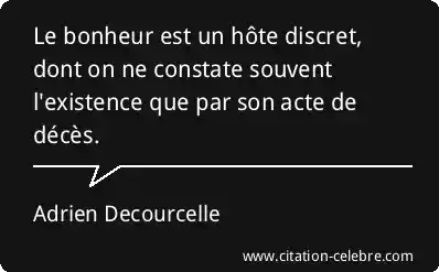 Le bonheur est un hôte discret, dont on ne constate souvent l'existence que par son acte de décès.