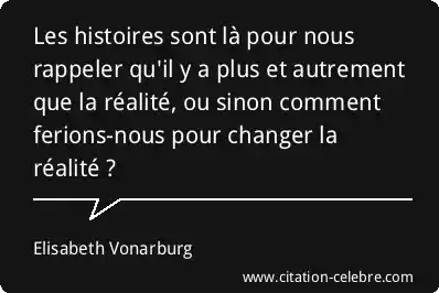 Les histoires sont là pour nous rappeler qu'il y a plus et autrement que la réalité, ou sinon comment ferions-nous pour changer la réalité ?