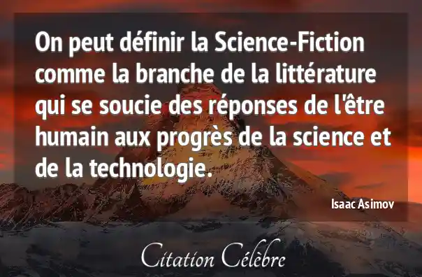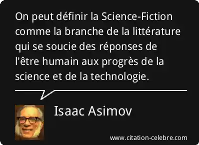 On peut définir la Science-Fiction comme la branche de la littérature qui se soucie des réponses de l'être humain aux progrès de la science et de la technologie.