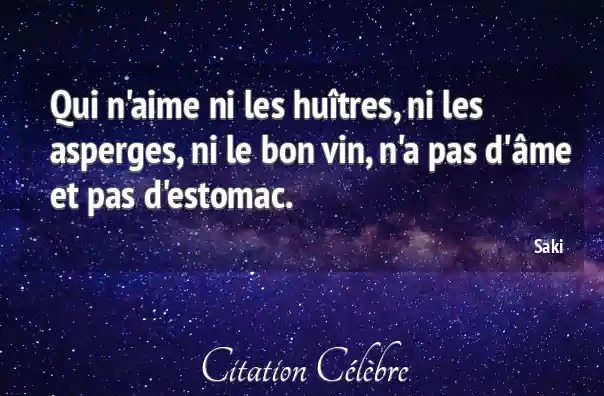 Qui n'aime ni les huîtres, ni les asperges, ni le bon vin, n'a pas d'âme et pas d'estomac.