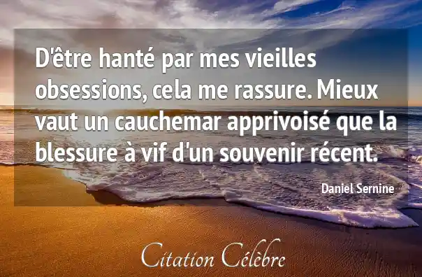 D'être hanté par mes vieilles obsessions, cela me rassure. Mieux vaut un cauchemar apprivoisé que la blessure à vif d'un souvenir récent.