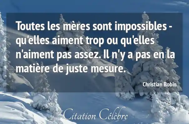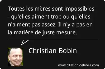 Toutes les mères sont impossibles - qu'elles aiment trop ou qu'elles n'aiment pas assez. Il n'y a pas en la matière de juste mesure.