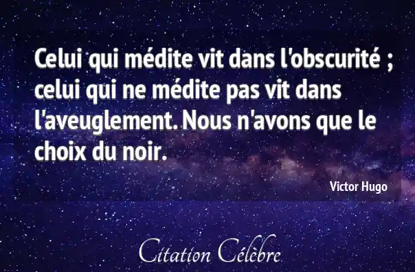 Celui qui médite vit dans l'obscurité ; celui qui ne médite pas vit dans l'aveuglement. Nous n'avons que le choix du noir.