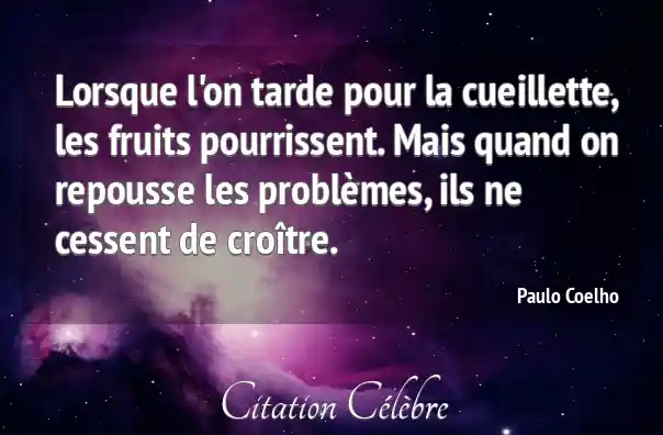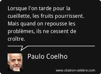 Lorsque l'on tarde pour la cueillette, les fruits pourrissent. Mais quand on repousse les problèmes, ils ne cessent de croître.