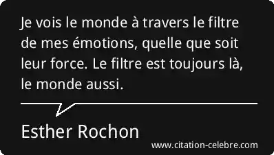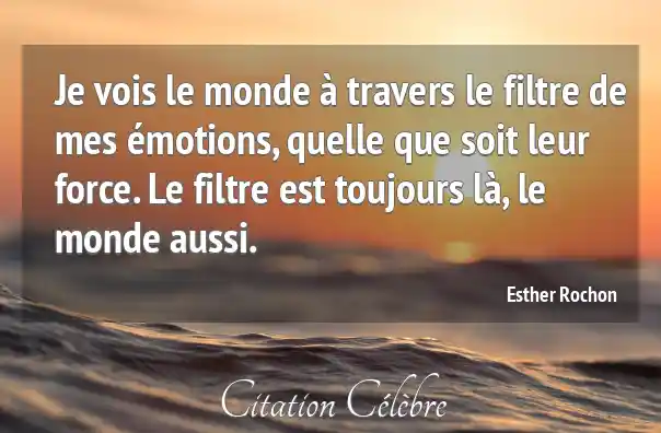 Je vois le monde à travers le filtre de mes émotions, quelle que soit leur force. Le filtre est toujours là, le monde aussi.