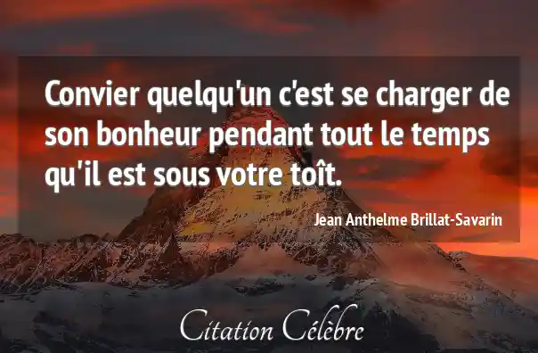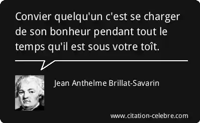 Convier quelqu'un c'est se charger de son bonheur pendant tout le temps qu'il est sous votre toît.