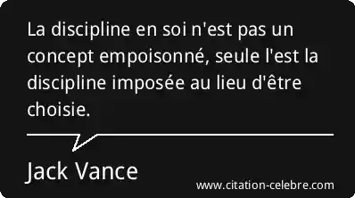 La discipline en soi n'est pas un concept empoisonné, seule l'est la discipline imposée au lieu d'être choisie.