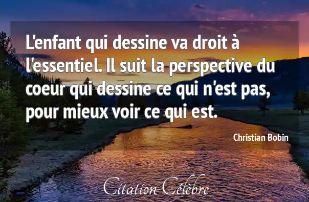 L'enfant qui dessine va droit à l'essentiel. Il suit la perspective du coeur qui dessine ce qui n'est pas, pour mieux voir ce qui est.