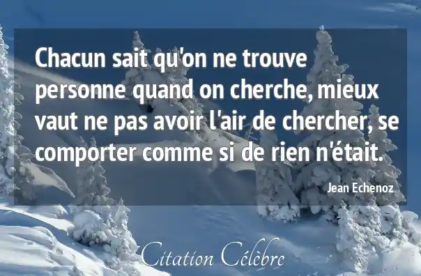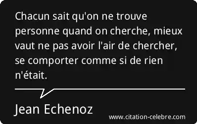 Chacun sait qu'on ne trouve personne quand on cherche, mieux vaut ne pas avoir l'air de chercher, se comporter comme si de rien n'était.