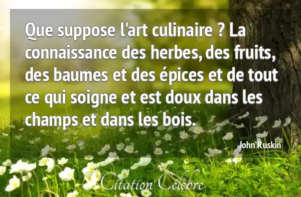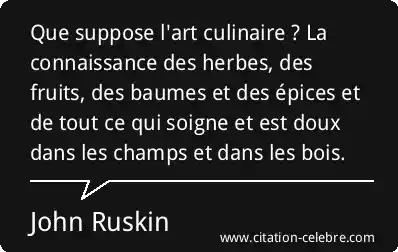 Que suppose l'art culinaire ? La connaissance des herbes, des fruits, des baumes et des épices et de tout ce qui soigne et est doux dans les champs et dans les bois.