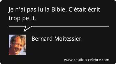 Citation Bernard Moitessier etait : Je n'ai pas lu la Bible. C'était écrit trop petit....