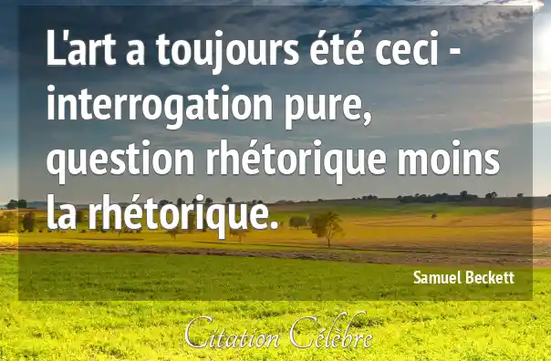 L'art a toujours été ceci - interrogation pure, question rhétorique moins la rhétorique.